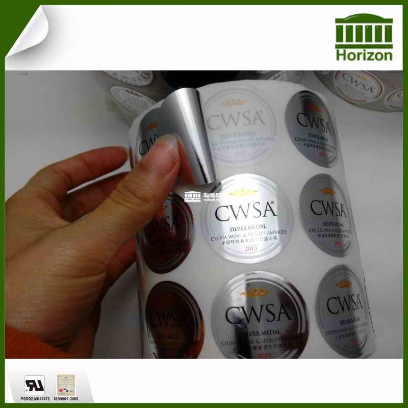 酒标:具有特殊纹理的艺术纸,标签具有艺术感,有多种质地和种类可供选择。吸墨性强。采用亮银材料印制,适用在酒类瓶盖或平底或瓶身贴标。