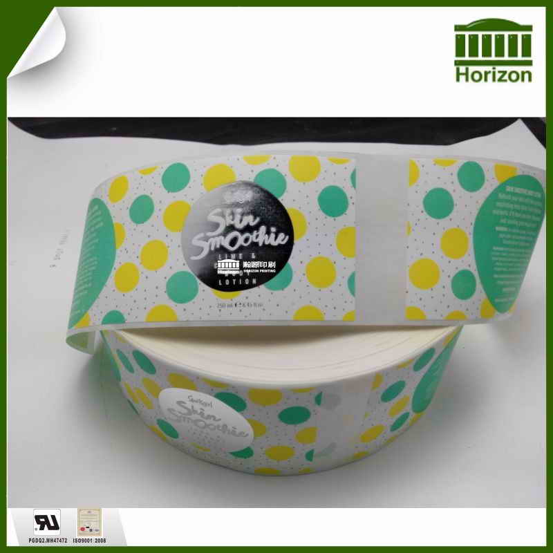化妆品标签:高光透明聚乙烯薄膜,良好的印刷适应性和模切性能,柔性极好,适合用于长挤压的瓶体。