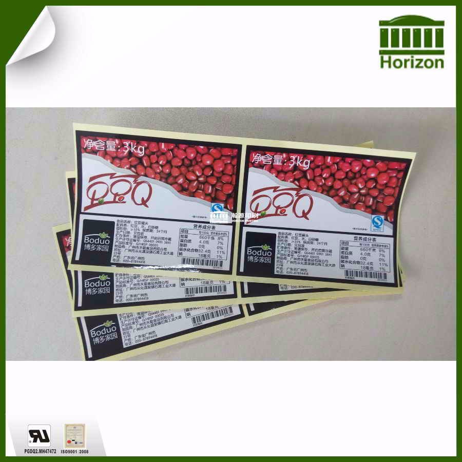食品标签:广泛适用于精细、高光泽彩色标签印刷。可适用于玻璃、钢板、纸箱、PE、PP、PET、等基材的贴标并有很好的粘附效果。