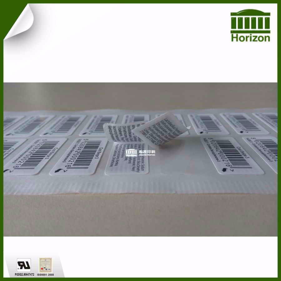 双层条码标四面印刷:高光透明聚乙烯薄膜,良好的印刷适应性和模切性能,柔性极好,适合用于长挤压的瓶体。