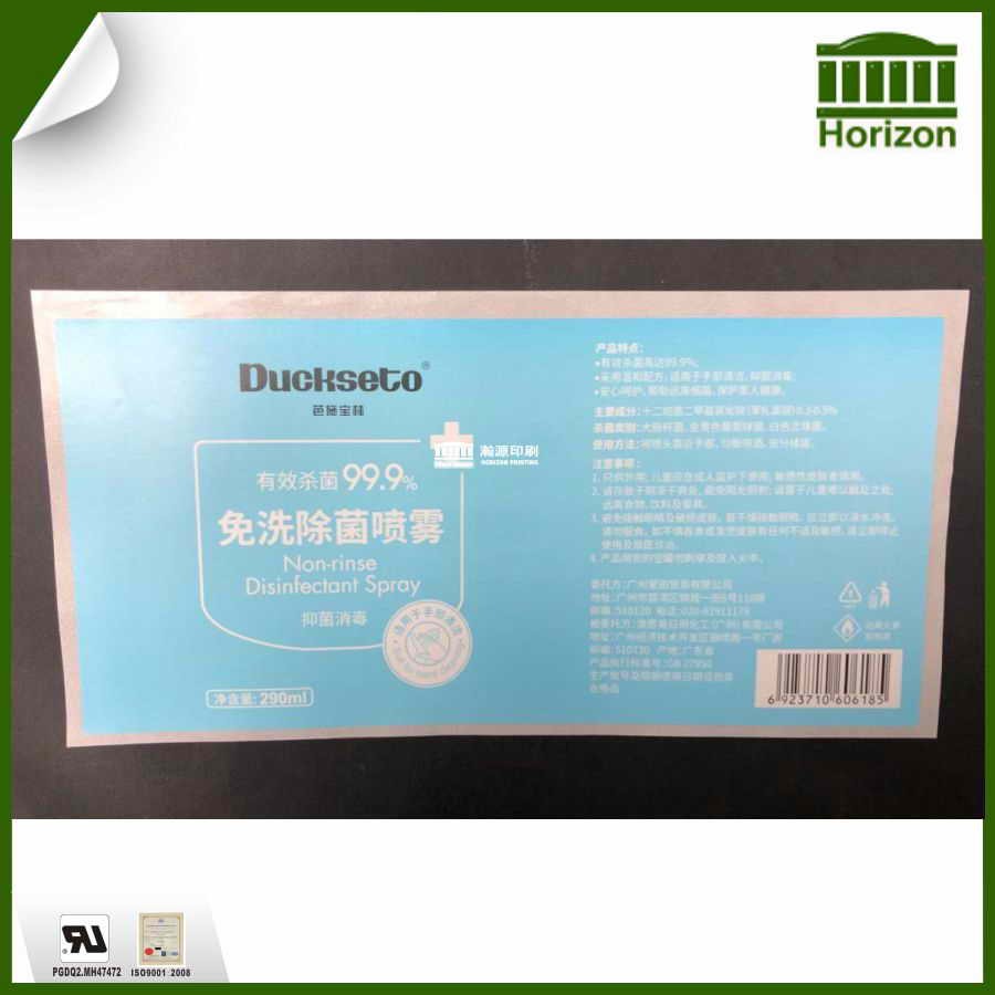 2020年受新冠肺炎疫情的影响,各种化工品标签(洗手液,消毒液,除菌喷雾等)是供不应求,成立于2002年的广州瀚源包装印刷制品有限公司,是国内领先的不干胶标签印刷厂家,可以为各种化工产品提供彩色不干胶标签,多层不干胶标签和折叠不干胶标签等等.